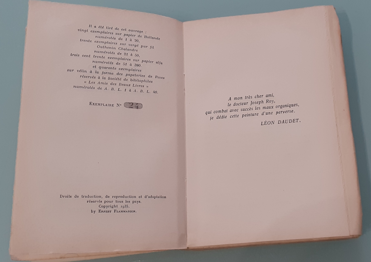 Éditions Flammarion, 284 pages, 1935, broché, un des 30 exemplaire sur vergé pur fil, numeroté 24, très bon état,